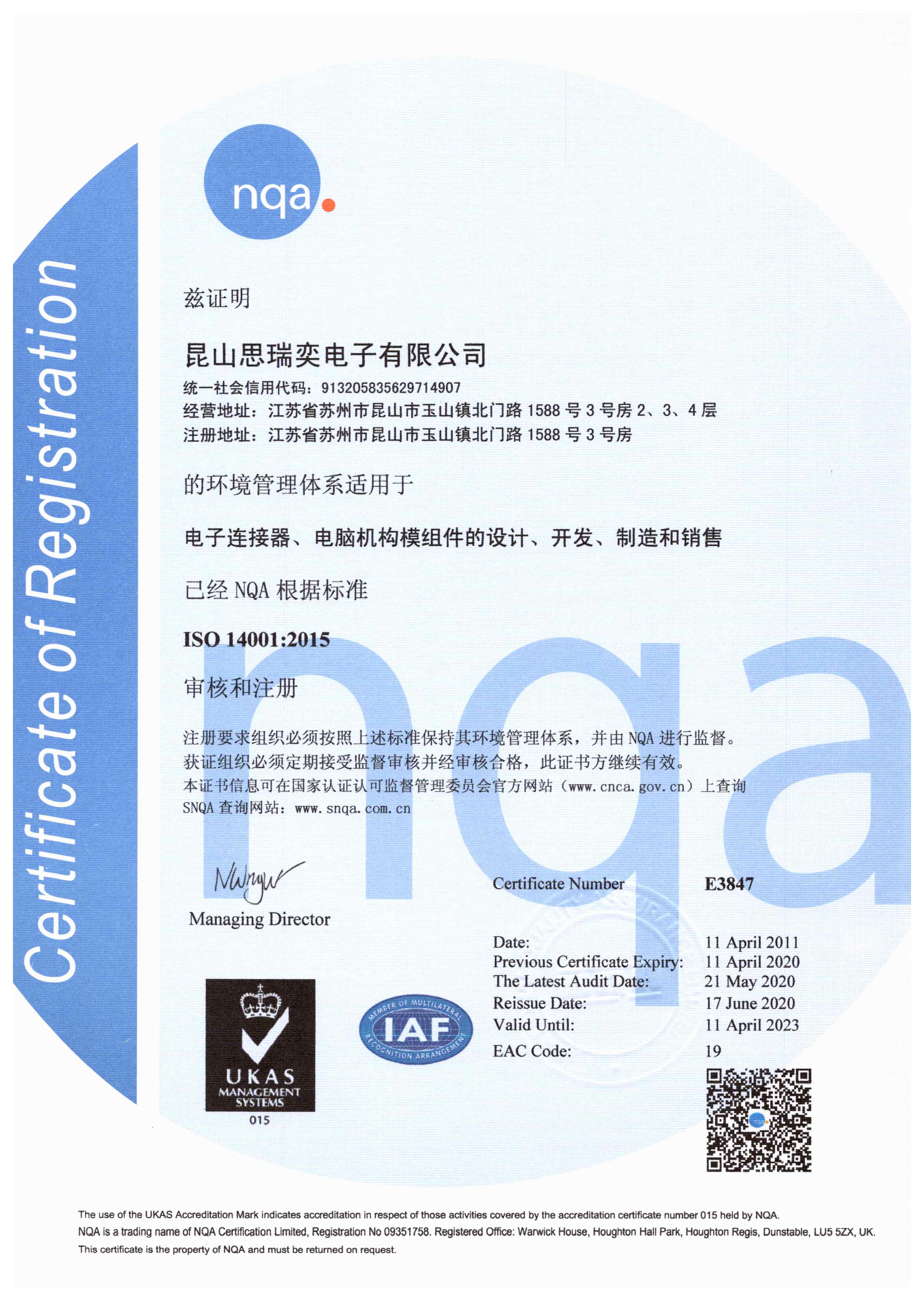 思瑞奕電子有限公司成立于2010年10月,注冊資金7500萬人民幣,總部位于江蘇省昆山市,在重慶、江蘇東臺、江蘇太倉設(shè)有分廠,公司于2011年通過ISO9001/ISO14001認(rèn)證,2013年通過高新技術(shù)企業(yè)和TS16949(IATF)體系認(rèn)定,2016年先后通過知識產(chǎn)權(quán)管理體系認(rèn)證、安全生產(chǎn)標(biāo)準(zhǔn)化認(rèn)證,2017年獲頒江蘇省民營科技企業(yè)、2018年先后獲得蘇州市人民政府認(rèn)定企業(yè)技術(shù)中心、科技部認(rèn)定中小型科技企業(yè)、江蘇省最具成長性高科技企業(yè)、2020年獲得江蘇省人民政府認(rèn)定企業(yè)技術(shù)中心、2021年獲得蘇州市瞪羚計劃入庫企業(yè)、江蘇省省級工程技術(shù)研究中心、江蘇省專精特新中小企業(yè)等榮譽稱號......